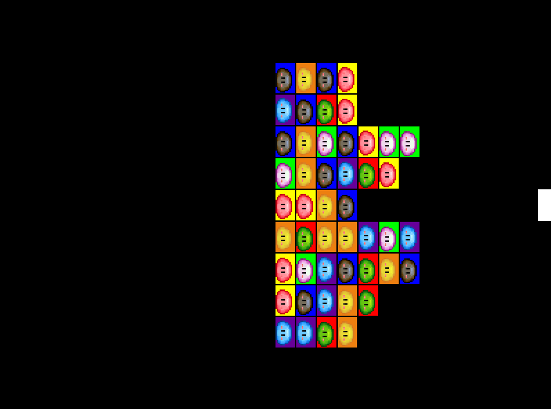 le but est de faire coller 3 blobs de même couleur pour les faire disparaitre et gagner 100 points